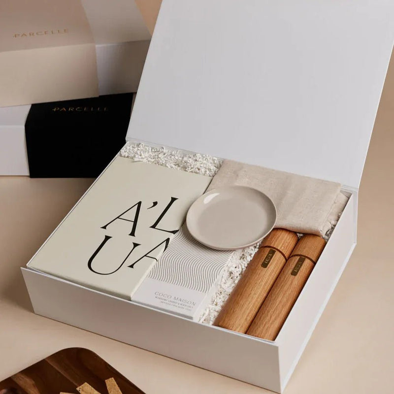 Introducing the A’Lua Grandeur gift, a celebration of luxury and refined living. Thoughtfully curated to impress, this hamper brings together beautiful design and high-quality essentials, making it a standout choice for real estate settlement gifts, housewarmings, or premium corporate gifting. Presented in a Parcelle Signature XL Gift Box, every detail has been considered to deliver a first-class unboxing experience.